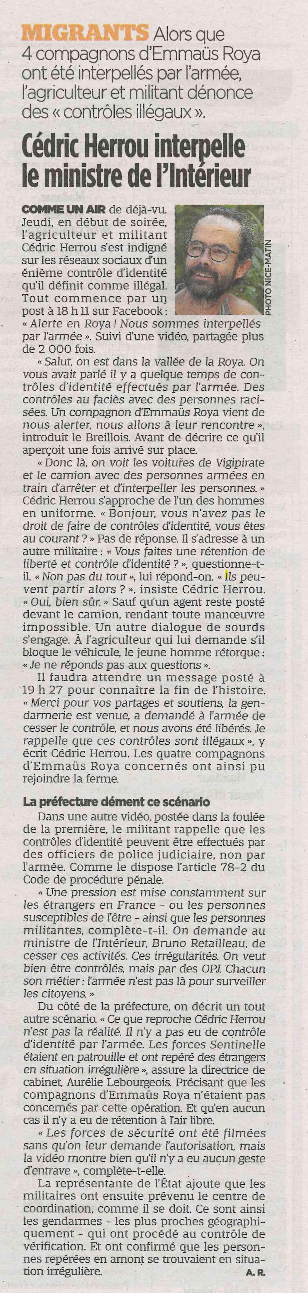 Cédric HERROU interpelle le ministre de l'intérieur
