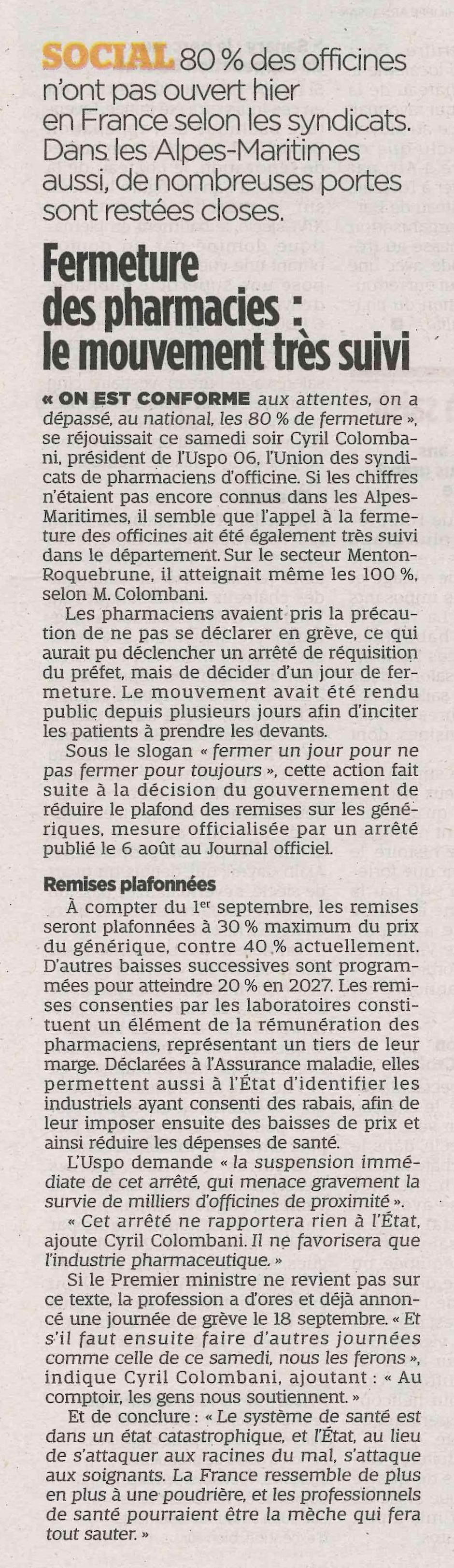 Fermeture des pharmacies: le mouvement très suivi